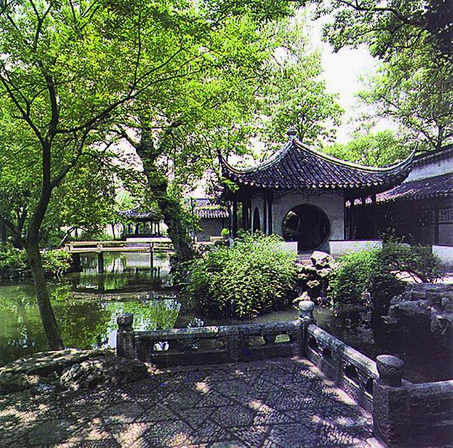 拙政園始建于明正德四年(公元1509年)。它雖經過幾百年的蒼桑變遷,但這里處處山水明秀,廳榭典雅,花木繁茂,漫步在其中,你仍能感受到其平淡疏朗、曠遠明瑟的明代氣息,游過全園,給我印象最深的是位于中部花園的最東面的"梧竹幽居",這里造型非常別致,四個大大的圓洞門使人馬上聯(lián)想起八月十五晚上的月亮。而更神奇的是如果你站在亭子里向外看,這四個圓洞門又恰似四個巨大的鏡框,鑲嵌著蘇州園林一年四季的風光。
