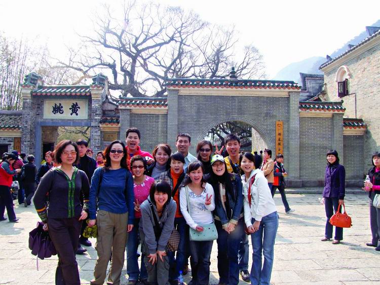 第三日清晨,整裝待發(fā)八點(diǎn)前往黃姚古鎮(zhèn)。賀州是粵東的一座新興城市,而黃姚,卻有著近千年的厚重。從古鎮(zhèn)入口前左邊的一條岔路走進(jìn)去,首先觸目的便是一條清澈的小溪、一棵參天的古榕樹,我們開始細(xì)細(xì)觀賞這個小鎮(zhèn)。古榕的軀干伸向小溪,又從空中垂下縷縷氣根,與水中的倒影連為一體。溪邊水井里清可見底,偶有小魚游動。據(jù)說黃姚是按九宮八卦陣式布局,鎮(zhèn)上的石板街有8條,共99999塊青石板,最早鋪砌于清順治年間。年代久遠(yuǎn),不知有多少人走過,青石板已被磨得像鏡子般光滑,隱約泛著人影。橋下的姚江,如今看水依舊清碧,可是繁華不再,顯赫的牌匾也只能靜靜地訴說著昔日的輝煌。石板路的小村落很安靜,人們過著日常的生活,村婦們在井頭溪邊,淘菜洗衣,交流信息,菜渣、閑話都隨溪水流去,并不對外來的游客有格外的好奇。孩子們快樂地嬉戲著,在那些蜿蜒的巷子里不時冒出他們快樂的喧嘩。宗祠府第這樣的舊時輝煌不經(jīng)意地散布于鎮(zhèn)上的民居之中,亭閣前的聯(lián)匾,記錄著文人騷客對黃姚的鐘愛,只是年代遠(yuǎn)去,如今物是人非。陽光下的青石板路上有時候也會躺著狗或者貓,你從它們身上跨過去的時候,它們會懶懶地翻翻眼皮,然后繼續(xù)睡在陽光里。雞們顯得勤快些,會邁著方步走在你前面東看看西瞅瞅,如果你不急,它會一直走在你前面,時間對它們沒有任何意義。還有那些老房子,任何一座都可能藏著一個故事。結(jié)了蛛網(wǎng)的窗欞恐怕已有了幾百年的歷史,但是沒有人把這當(dāng)成了不得的事情,一切如常,平靜隨意。
